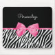 Zebra Print and Pink Bow Glam Design With Name Mouse Pad