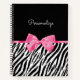 Zebra Print and Pink Bow Glam Design With Name Notebook