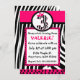 Zebra print and pink diva 3rd birthday invitation