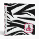 A binder with a background of black and white zebra print covering entire outside surface. Pink Schoolhouse logo inside fancy Frame with sheer background at front bottom right. Add your own text to the spine. To change text size, style, color, or position, just click "customize it!"