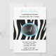 Zebra Print Aqua Blue Glass Monogram Birthday Invitation