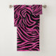 Elegant modern hot pink and black zebra print pattern bath towel, hand towel and wash cloth. Matching items in our store.
