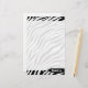 Custom printed 5.5" x 8.5" stationery with a black & white zebra print pattern design, personalized with your name over a black arrow tag print.