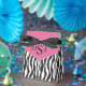 Zebra print with hot pink contrast and baby carriage design gift box design for a baby shower.
