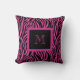Monogrammed elegant modern black and hot pink zebra print throw pillows shows off your wild side. Choose from 3 sizes. Matching duvet cover and other items in our store.