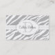 A whimsical zebra print pattern in pale grey and white makes this one ultra chic business card - perfect for a personal calling card as well as a boutique, stylist or any business. Customize with your own text for a perfectly personalized card that will grab attention! {{Click the orange "CUSTOMIZE" button to CHANGE THE BACKGROUND COLOR, FONT COLOR & TYPEFACE}}
