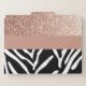 Zebra Print Pattern and Gradient Rose Gold Glitter File Folder