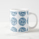 Cute and trendy Zebra Print Polka Dots Jumbo Mug. This design features fun zebra print pattern circles in blue and white. Text can be added to this design to give it a personal touch.