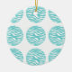 Cute and trendy Zebra Print Polka Dots Ornament. This design features fun zebra print pattern circles in turquoise and white. Text can be added to this design to give it a personal touch.