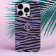 Zebra Print Purple Black Striped Monogrammed Case-Mate iPhone Case
