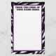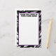 Stationery featuring a zebra print border with purple trim. Text on top. Line 1 reads "From the desk of" Line 2 reads "Your Name Here" All text may be personalized. If you wish to change the font size, style, or color you may use the design tool