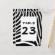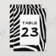Zebra stripes pattern in black and white with room for a table number. You can customize and erase the word "Table" and center the number.