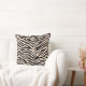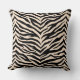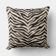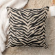 This throw pillow is shown in a exotic animal zebra print design in colors of black and a light beige.