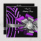 Zebra Purple Black Silver Bow Pearl Birthday 2 Invitation