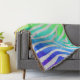 A quality printed throw has its advantages. This is a much finer weave throw than its loopier cousins, and though lighter, it is worth the investment for custom room accessorizing. The back is much prettier than the typical brown, and the fringe on the long sides very vivid, the selvage nicely done. Before photographing, I washed the throw in cold water, delicate, with a thicker woven throw the same size. On tumble dry low, this throw was dry in half the time as the other. This is a very practical quality if you use throws for furniture covers or to wrap up in frequently. The sleekness of the fabric makes it a great layer for accenting or protecting without the feeling of sitting on too much stuff. Perfect for napping or when you feel a light chill coming on. The color printing is beautiful and on this fabric, matched the design and color of my Photoshop image. This is an advantage for blending room fabrics and colors. The fringe on the short sides prints the colors from the design image and therefore varies from the side fringe. I streaked a white fractal line through the plaid pattern to give the illusion of weaving. This printed as crisp as an illusory thread, and put some white in the short side fringe, showing another advantage of print vs loomed- for artistic purposes, line lines, detail, and color integrity can be planned and preserved. My loomed throws have color limitations and more of a needlepoint texture. Print throws reproduce an exact image. The throw felt a little stiff straight out of the package, but this went away in the first delicate wash. Of course I searched the wash water for ink or bleeding and there was none.