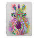 This watercolor print features a colorful portrait of a zebra in orange glasses adorned in flowers | By Fab Funky. Image ID: 192221D