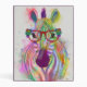 This watercolor print features a colorful portrait of a zebra in orange glasses adorned in flowers | By Fab Funky. Image ID: 192221D