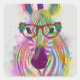 This watercolor print features a colorful portrait of a zebra in orange glasses adorned in flowers | By Fab Funky. Image ID: 192221D