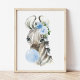 Zebra, Safari, Blue Bubble Gum, Boy Nursery Poster