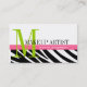 Zebra Stripe Pattern Monogram Make Up Artist Business Card