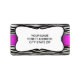 This address label features a black and white zebra striped background, a white bracket shape in the center and customizable text for your name and contact information. A bright pink horizontal stripe gives this label an accent of color.