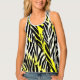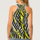 Zebra striped tank top featuring a black white and yellow striped pattern resembling the stripes of a zebra.
