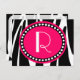 Stylish postcard is a great way to send a little note or letter to friends, co-workers and family. Design features a black and white zebra stripe background. In the center is a hot pink oval with black trim and white polka dots around it. The center of the oval is also hot pink and there is a place for your initial in large white script font. The reverse side of the postcard has a black and white zebra stripes background and a white shaded area for your writing and note. These post cards make a great addition to your home or business office. Matching note cards and postage stamps also available.