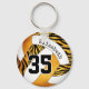 This bold zebra stripes girl's volleyball keychain features a wild zebra stripes accent pattern on four of the volleyball's panels - the zebra stripes panels plus three other panels have a gold/orange, digitally created metallic look texture background that contrasts with the remaining white volleyball panels - customize with player name and jersey number - by katz_d_zynes