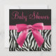 Zebra Stripes & Pink Printed Bow Baby Shower Invitation