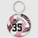 This girly zebra stripes volleyball keychain features a wild zebra stripes accent pattern on four of the volleyball's panels - the zebra stripes panels plus three other panels have a rose gold, digitally created metallic look texture background that contrasts with the remaining white volleyball panels - customize with player name and jersey number - by katz_d_zynes