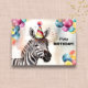Zebra with Balloons and Party Hat Happy Birthday Card