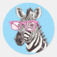 Zebra with Pink Glasses Sticker Blue Background