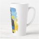 Honoring the fearless and charismatic President of Ukraine, Volodymyr Zelenskyy - this latte mug design features black and white photo cutout of the country's leader with blue and yellow "hope" "Hero" "Ukraine Strong" words on watercolor blue and yellow brushstroke background