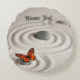 A calming Zen Garden print with raked sand, smooth gray stones and a beautiful monarch butterfly decorate this meditation and yoga round pillow. Change the dark gray text using the Template provided. Awesome gift for friend or instructor. Dimensions are 16" diameter when flat and 14" stuffed. 100% brushed polyester is wrinkle free. Machine washable, able to retain color and resist shrinkage. Made in the USA. See "About This Product" at side for more information.