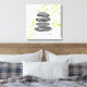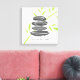 Zen quote pebble stones stacking canvas wall art. Zen pebble stone garden with green bamboo leaves design.