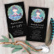 Modern Zen Watercolor meditating girl with Blue Flowers, Stacked Rocks Stones, Bamboo with Gold Splashes Design. Text ready for your info. Perfect for Massage Therapist, Yoga Instructors, aromatherapy and Spas and clinics. Black Background. Change the background color to fit your needs. Ready for your text info