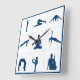 Add some Zen to your wall art. Yoga Positions on Square Wall Clock with a blue border. Great theme decor for a meditation room or studio.