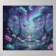 This fantasy poster features a Moonlit mystical forest with a meditative frog on a lily pad holding a glowing crystal, surrounded by ethereal flowers, aurora lights, and reflections.