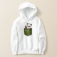 This illustration showcases a cute panda peeking out from a green pocket. The panda is smiling with closed eyes and one paw raised, adding a playful touch. The green pocket features black stitching, enhancing the realistic feel of the cartoon. This charming image combines the cuteness of a panda with the whimsical concept of a pocket, making it look like the panda is playfully hiding or lounging inside the pocket.
