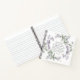 Inspirational scripture journal, notebook depicts floral watercolor wildflowers in soft colors of dusty purple, pink, and soft green shades. It features Bible Verse Zephaniah 3:17, "The LORD your GOD in your midst, The Mighty One, will save; He will take great delight in you, He will quiet you with His love, He will rejoice over you with singing."