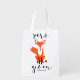 Modern and unique reusable bag featuring modern calligraphy and fox illustration. This design is available in variety of products.