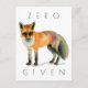 Funny fox postcard for animal lovers. This is a watercolor painting of an orange fox with white chest and black tail and paws. It was painted with Daniel Smith and Holbein watercolor paints. The text says "Zero fox Given." Funny pun design.