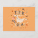 This delightful illustration features Zero, the ghost dog from "The Nightmare Before Christmas," in a vibrant Halloween setting. Zero is depicted in a joyful pose, floating amidst a swirl of autumn leaves and Halloween candies. The backdrop is a warm orange, and the phrase "Trick or Treat" playfully encircles Zero, adding to the festive atmosphere. This image captures the essence of Halloween through the eyes of one of Tim Burton's most beloved characters.