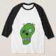 I bought the Men's Basic 3/4 Sleeve Raglan T-Shirt, White/Navy. It arrived on time for a gift and is of a great quality and fits perfectly! So cute! Zazzle has done it again! The printing was clear and filled in solidly.