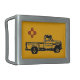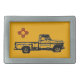 Zia Rising pewter belt buckle features Giant Bob's familiar red Zia companion hovering in the sky over his pickup bed. Wear this high quality buckle with New Mexico and Classic Truck pride, and spread the joy of Giant Bob! Customize it by adding your own text or picture. The digital art on this belt buckle is copyright © Lagarto and Kathi Shotwell and is only available through me or Lagarto.