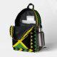 The Zig-Zag Jamaican Flag design prominently features yellow and green in a chevron pattern on a black background, which is unique and can't be found anywhere else, with the Jamaican flag at its center. When this design is printed on a backpack, it is the height of cool, functional Boho fashion. Great for a high school or college student.