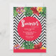 A stunning tropical-theme, watercolor invitation for a summer party. The black and white zig zag pattern is embellished with tropical flowers. A bold, red-center dot holds your party details. <a href='http://www.freepik.com/free-vector/zig-zag-lines-with-watercolor-flowers-party-flyer_896685.htm'>Designed by Freepik</a>. <br/><br/>The card is easy to customize with your wording, font, font color, paper shape options and choice of six paper types.<br/><br/>Not exactly what you're looking for? All our products can be custom designed to meet your needs at no extra charge.<br/><br/>Simply contact us at heartfelthelper@gmail.com<br/><br/>Coordinating products available: Just ask us!
