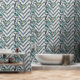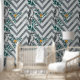 This elegant wallpaper features a pattern of zigzags and birds.