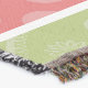 A quality printed throw has its advantages. This is a much finer weave throw than its loopier cousins, and though lighter, it is worth the investment for custom room accessorizing. The back is much prettier than the typical brown, and the fringe on the long sides very vivid, the selvage nicely done. Before photographing, I washed the throw in cold water, delicate, with a thicker woven throw the same size. On tumble dry low, this throw was dry in half the time as the other. This is a very practical quality if you use throws for furniture covers or to wrap up in frequently. The sleekness of the fabric makes it a great layer for accenting or protecting without the feeling of sitting on too much stuff. Perfect for napping or when you feel a light chill coming on. The color printing is beautiful and on this fabric, matched the design and color of my Photoshop image. This is an advantage for blending room fabrics and colors. The fringe on the short sides prints the colors from the design image and therefore varies from the side fringe. I streaked a white fractal line through the plaid pattern to give the illusion of weaving. This printed as crisp as an illusory thread, and put some white in the short side fringe, showing another advantage of print vs loomed- for artistic purposes, line lines, detail, and color integrity can be planned and preserved. My loomed throws have color limitations and more of a needlepoint texture. Print throws reproduce an exact image. The throw felt a little stiff straight out of the package, but this went away in the first delicate wash. Of course I searched the wash water for ink or bleeding and there was none.