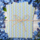 Traditional zigzag or chevron stripes in blue, green and extra light ivory. Good for many different occasions and age groups.
